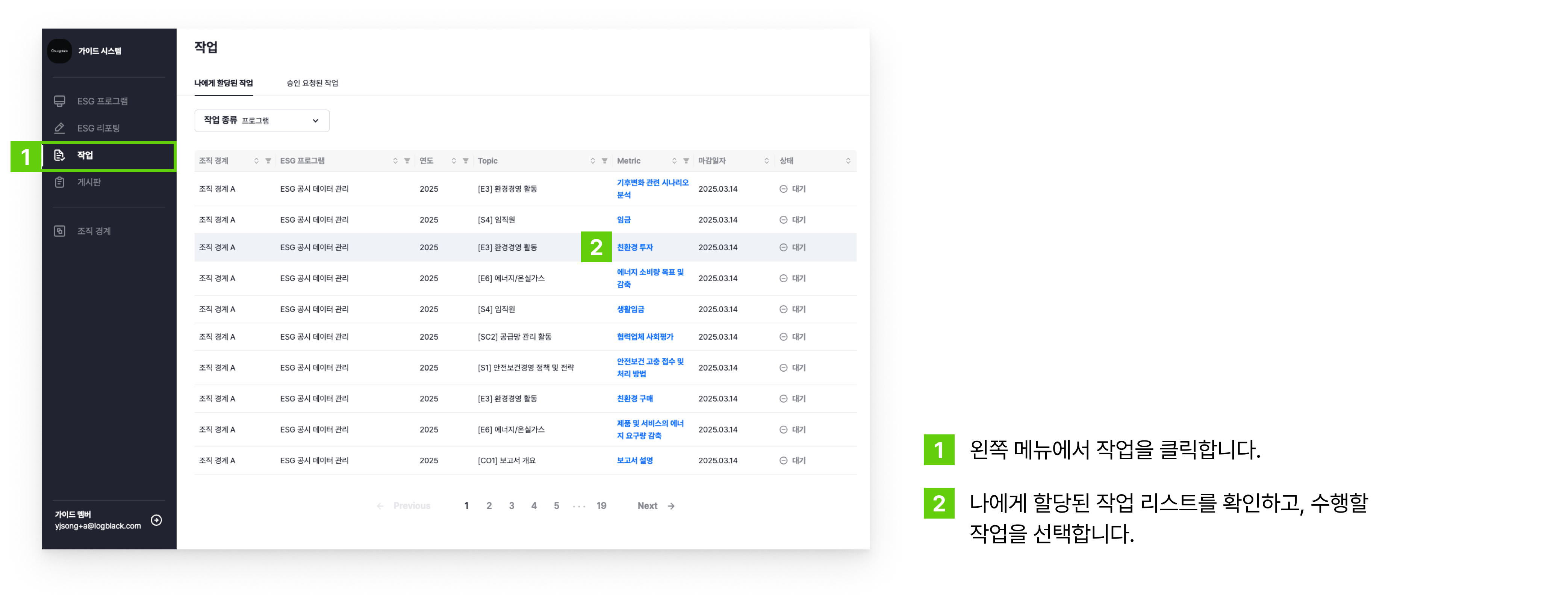 작업 탭에서 내 작업을 확인하고 수행할 수 있습니다.