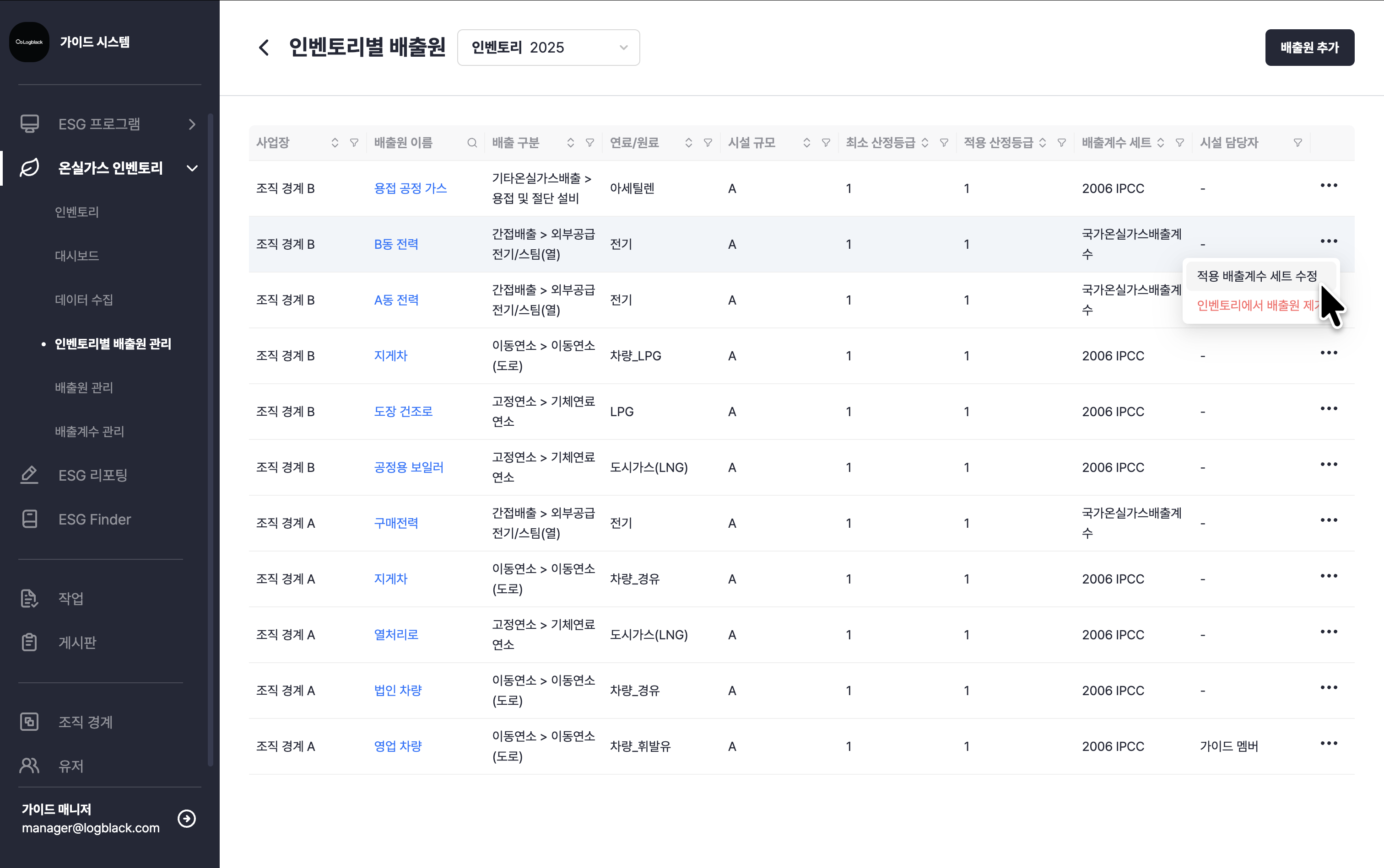 온실가스 인벤토리 > 인벤토리별 배출원 관리